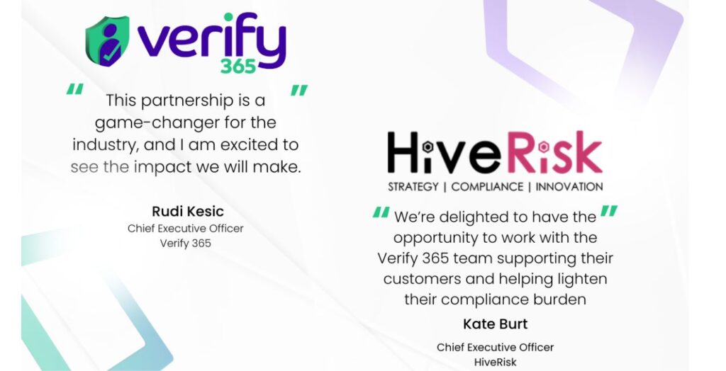 Verify 365 Announces Exciting Strategic Partnership with Legal and Compliance Experts, HiveRisk